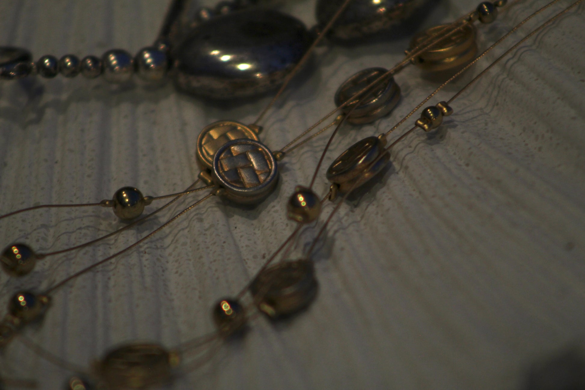 A thin gold wire threads a sequence of alternating gold and silver disks and softly rounded beads - like notes on a wire, or a whispered story passed through generations. Its balance feels effortless. Its elegance, inherited.