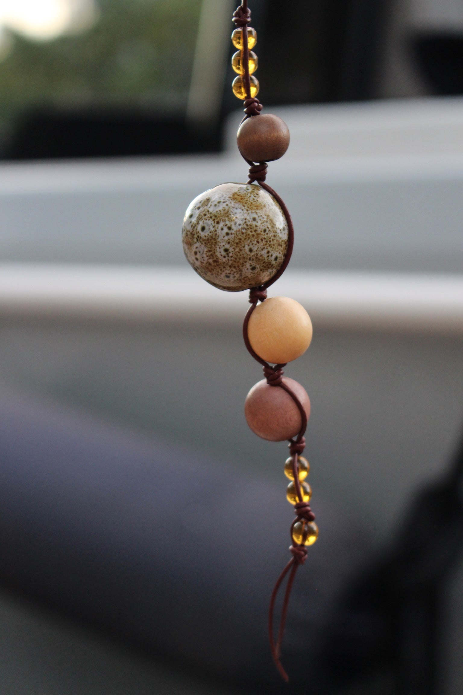 Our Harvest Bag Charm embodies the warmth and abundance of the season in every detail. At its heart sits a beautifully patterned ceramic bead, rich with earthy texture and natural charm. It’s framed by smooth, warm-toned wood beads and bright citrus glass accents that add a gentle glow, like sunlight filtering through autumn leaves. Strung on a deep burgundy leather cord, this piece radiates balance and organic beauty - an effortless way to bring a touch of golden warmth to any bag. Finished with a round gold carabiner clip for easy attachment.